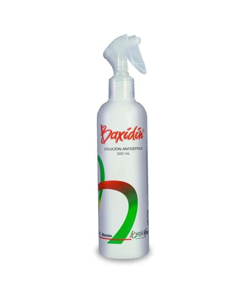 Aplicar BAXIDIN puro sobre : Heridas, quemaduras y/o ulceraciones en la piel, antiséptico de uso vaginal, prepucial, bucal (gingivitis, alveolitis, estomatitis y placa dental), conducto auditivo externo y preparación antiséptica prequirúrgica, desinfección objetos inanimados.