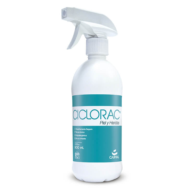 Para obtener mejores resultados en heridas con alto grado de infección es recomendable realizar el procedimiento de curación varias veces al día. Instaurar terapia antibiótica en los casos que lo ameriten. En caso de no poseer gasa o apósito vaselinado para favorecer la humedad del área, irrigue sobre la gasa y la lesión CICLORAC® piel y heridas dos veces al día. No utilizar simultáneamente con otros antisépticos. Manténgase fuera del alcance de los niños y animales domésticos. Uso veterinario.
