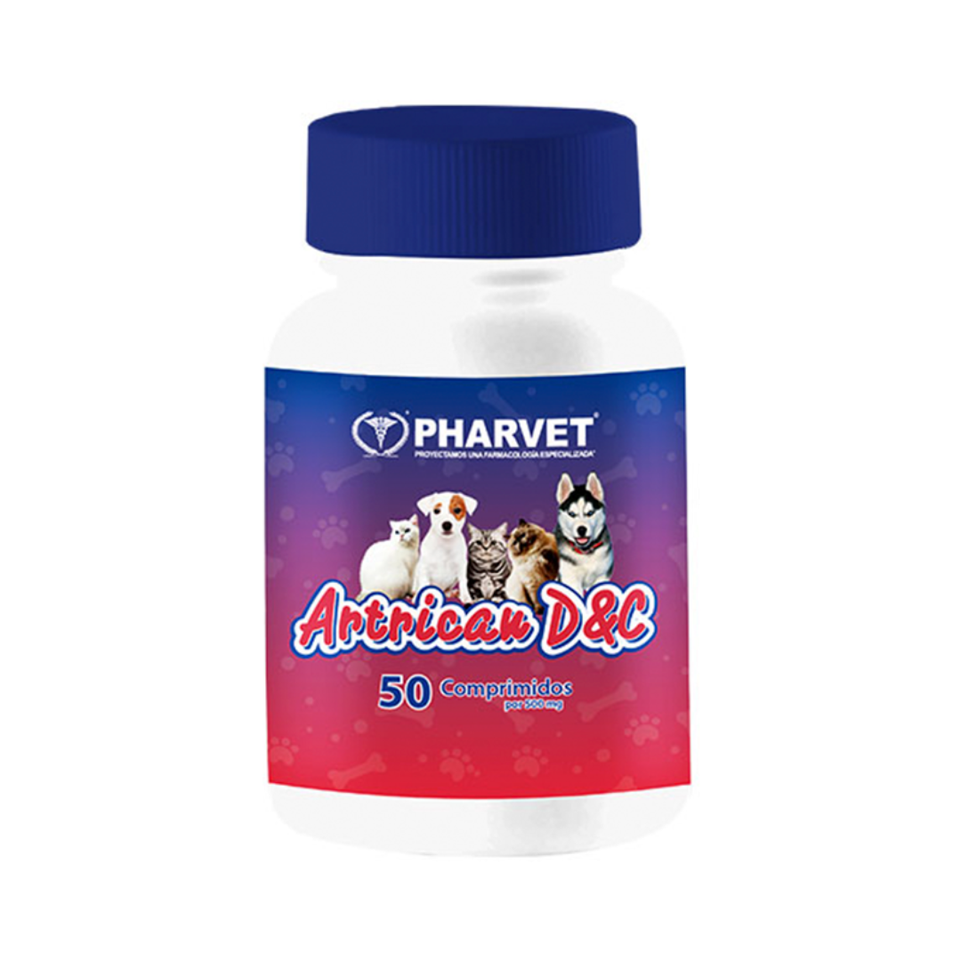 Suplemento alimenticio con base de Sulfato de Glucosamina y sulfato de Condroitina para administrar a perros y gatos de todas las razas y etapas de crecimiento.