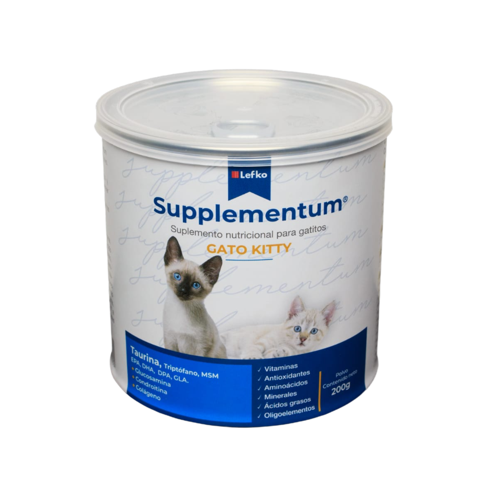 Suplemento nutricional balanceado y altamente palatable. Indicado en Gatitos desde los dos meses de edad hasta la edad adulta. Está diseñado para proteger las articulaciones, los huesos y la piel, así como la función digestiva, nerviosa, muscular, cardiaca, respuesta inmune y visión. Mejora el brillo del pelaje y la apariencia.